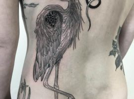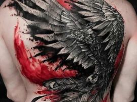 Пернаті нерідко прикрашають чоловічі зі змістом татуювання. Ширяючі Птахи викликають уявлення свободи і підкорення всіляких вершин. Сова означає Мудрість. Її зображення видає прагнення до містики, нічного життя і тиші. СОКІЛ або яструб характеризують широкий кругозір, швидкість, стрімкість. Крім того, хижі птахи символізують допитливість, бажання вивчати навколишній світ. Птах Фенікс означає відродження, оновлення. Міфічна істота живе вічно і, згораючи у вогні, з попелу відтворюється знову. Часто зображення різних птахів вибираються не тільки для великих ескізів, але і як маленькі татуювання.