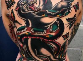 - Пантера, зображена на чоловічих татуюваннях, є символом спритності, активного способу життя, сміливості. Дика кішка здатна впоратися з дуже великим противником.