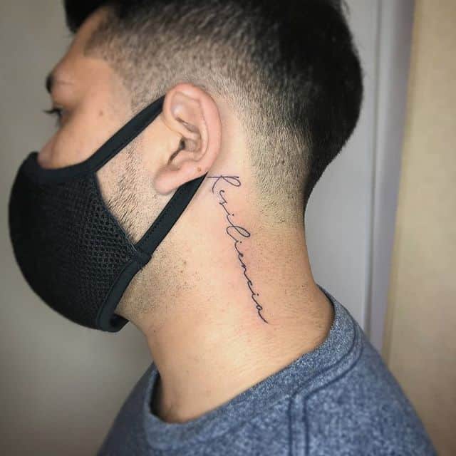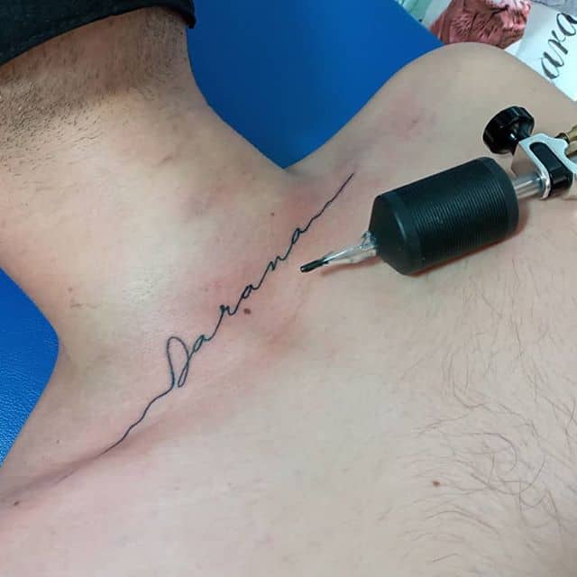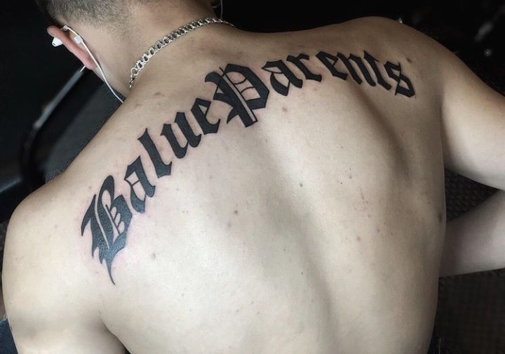 Найчастіше представники сильної статі зображують на тілі імена близьких людей. Ім’я може належати коханій жінці, дитині, батькові, рідній людині, кращому другу. Оригінально виглядають татуювання, де красивий каліграфічний шрифт змінюється на дитячий почерк. Найсміливіші повторюють на тілі записки з дитинства.