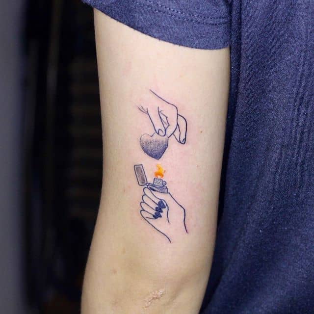На честь романтичних подій Чоловіки на тілі традиційно набивають серце. Позитивними деталями для доповнення подібних тату служать крила, квіти, лінії серцебиття, вогонь, ангели, стріли. Розбите серце, шрами на ньому, шви, відбитки взуття, медичні пов’язки, ножі символізують любовні невдачі і розчарування.