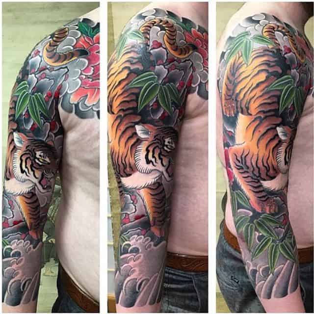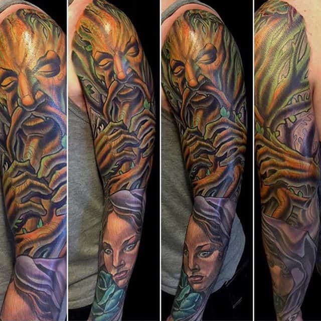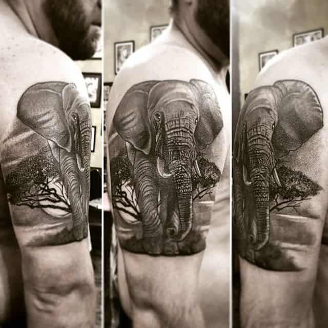 Татуювання зі змістом чоловічі нерідко включають в себе зображення дерева з розвиненою кореневою системою, міцним стовбуром і безліччю гілок. Подібний малюнок асоціюється зі стійкістю, здатністю протистояти несприятливим умовам, багатогранністю особистості, наповненістю енергією землі і Сонця. Дерево без листя означає Очікування змін, затишшя перед пробудженням і відродженням. Крім того, популярним є зображення дерева життя. Його коріння і крона утворюють коло, що символізує нескінченний життєвий цикл. Великі сюжети зазвичай набиваються на спині, малюнки невеликого розміру розташовують на грудях, животі, передпліччі або зап’ясті.