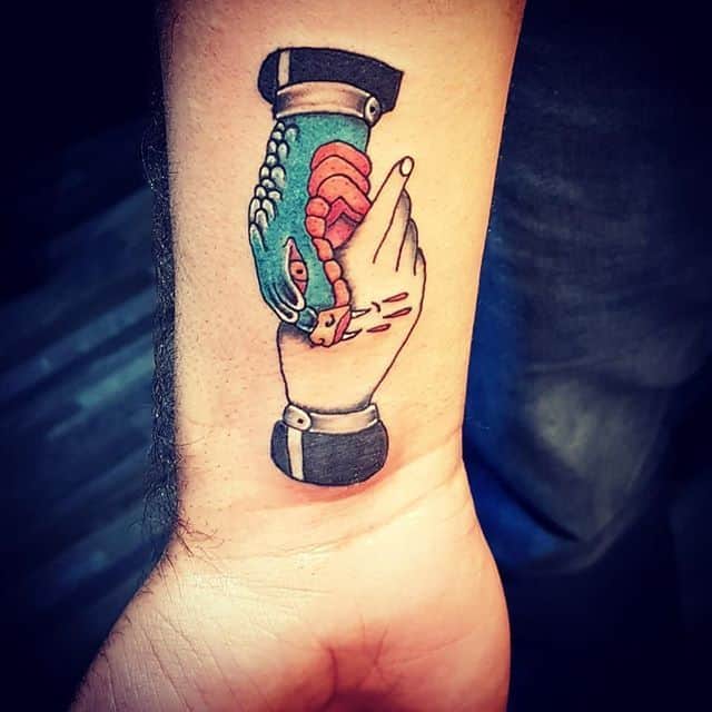 Кисті рук, складені в молитві, що тримають чотки або ланцюжок з хрестом, в будь-якому випадку не можна назвати безглуздим, марним малюнком. Подібне зображення демонструє зв’язок з духовним світом, прагнення до моральності і вищих цінностей, бажання спокутувати гріхи. Найчастіше на таких татуюваннях написи мають релігійний або трагічний сенс. Малюнок доповнюється цитатою з молитви або датою скорботного події, наприклад, смерті близької людини. Зазвичай тату набивають на грудях або на плечі.