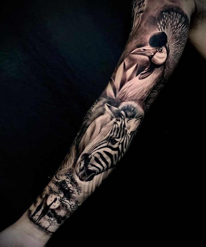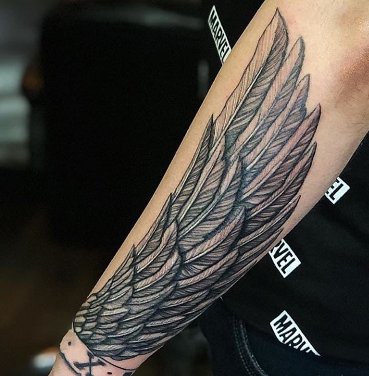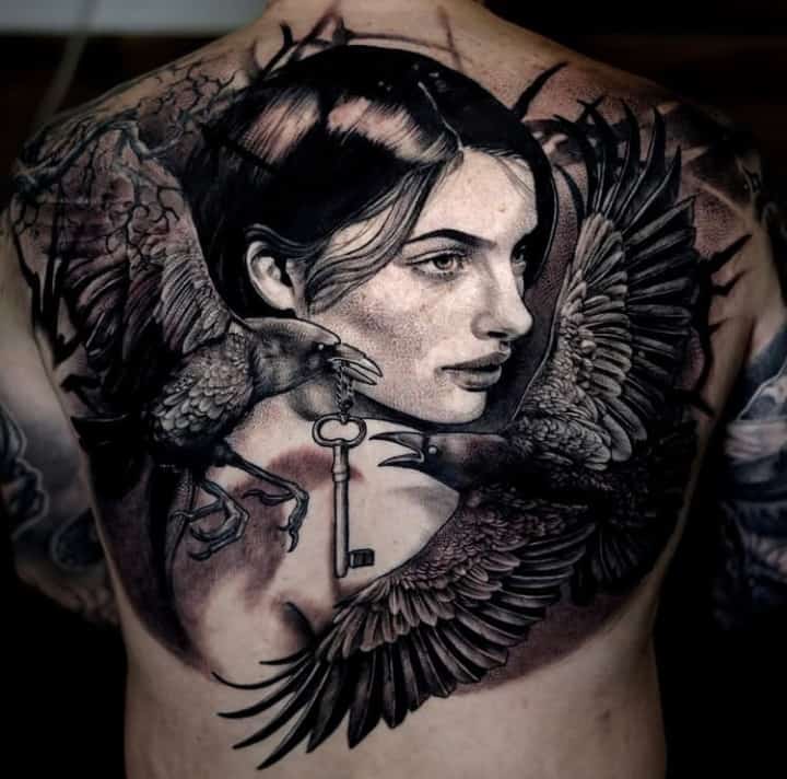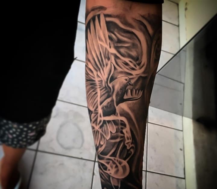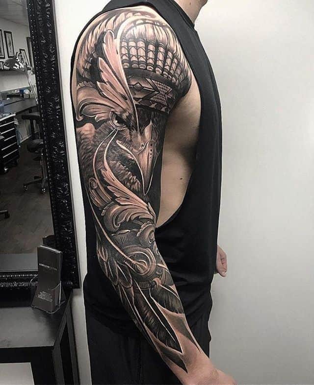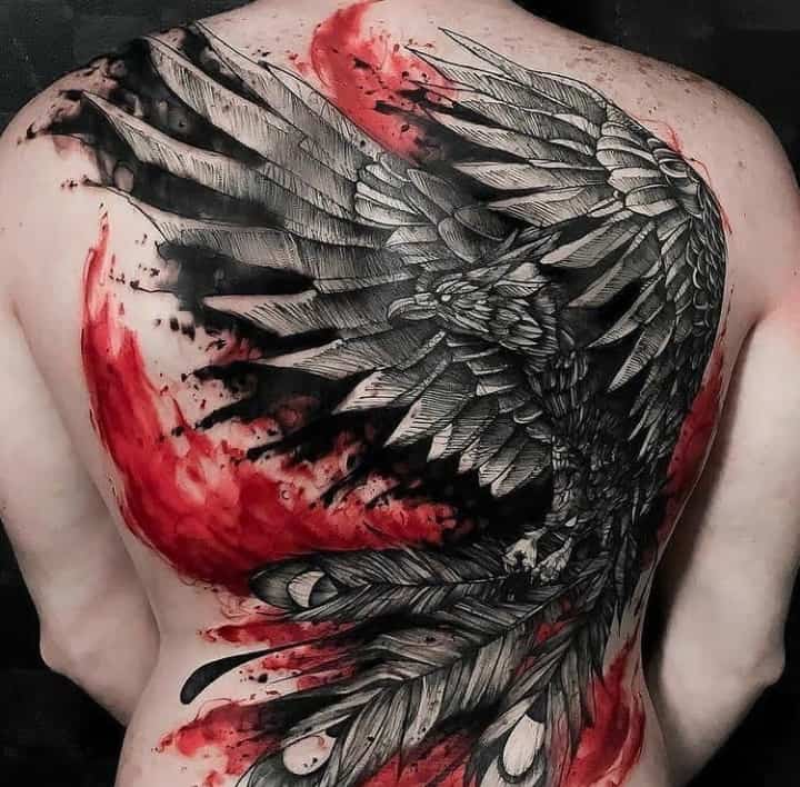 Пернаті нерідко прикрашають чоловічі зі змістом татуювання. Ширяючі Птахи викликають уявлення свободи і підкорення всіляких вершин. Сова означає Мудрість. Її зображення видає прагнення до містики, нічного життя і тиші. СОКІЛ або яструб характеризують широкий кругозір, швидкість, стрімкість. Крім того, хижі птахи символізують допитливість, бажання вивчати навколишній світ. Птах Фенікс означає відродження, оновлення. Міфічна істота живе вічно і, згораючи у вогні, з попелу відтворюється знову. Часто зображення різних птахів вибираються не тільки для великих ескізів, але і як маленькі татуювання.