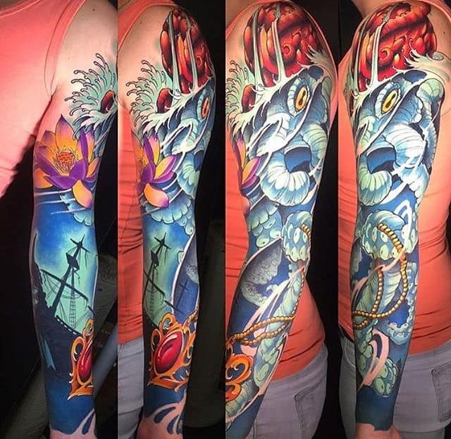 Досить популярні татуювання зі змістом на теми, пов’язані з професіями і захопленнями. Медицина, Авіація, космос, Дайвінг, подорожі, мореплавство, музика, Кухарська справа – будь-яке заняття і подія можуть знайти відображення в ескізах художника. Професійні теми дають величезний простір для фантазії.