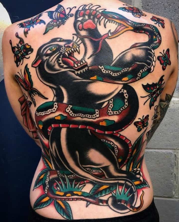 - Пантера, зображена на чоловічих татуюваннях, є символом спритності, активного способу життя, сміливості. Дика кішка здатна впоратися з дуже великим противником.