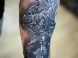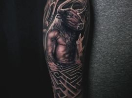 Татуювання на основі міфів – дуже популярна ідея в Києві. По-перше, вони завжди виглядають нетривіально і по-особливому, по-друге, кожен такий образ завжди має свою символіку. Наприклад, ми розповімо Вам про значення татуювання Мінотавр.