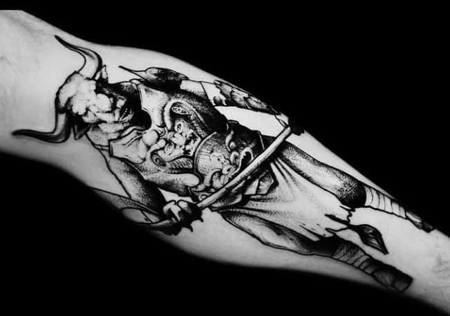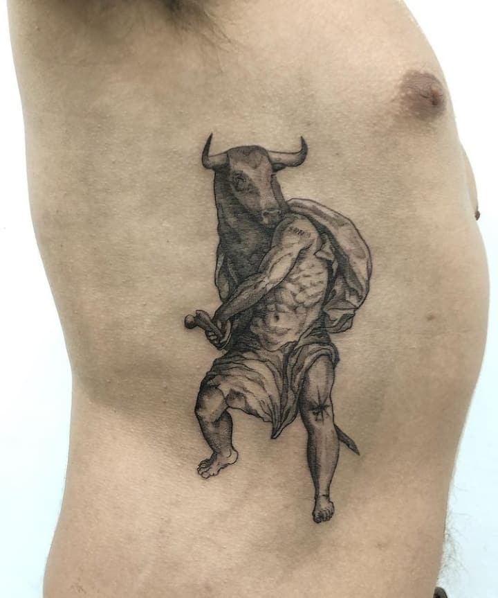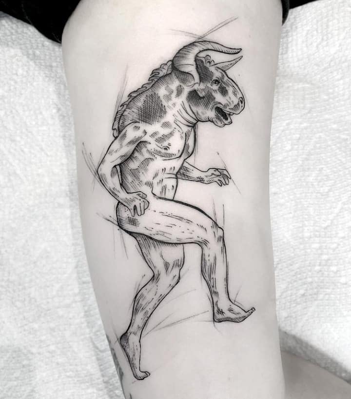 Татуювання на основі міфів – дуже популярна ідея в Києві. По-перше, вони завжди виглядають нетривіально і по-особливому, по-друге, кожен такий образ завжди має свою символіку. Наприклад, ми розповімо Вам про значення татуювання Мінотавр.