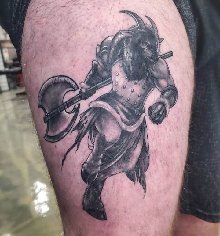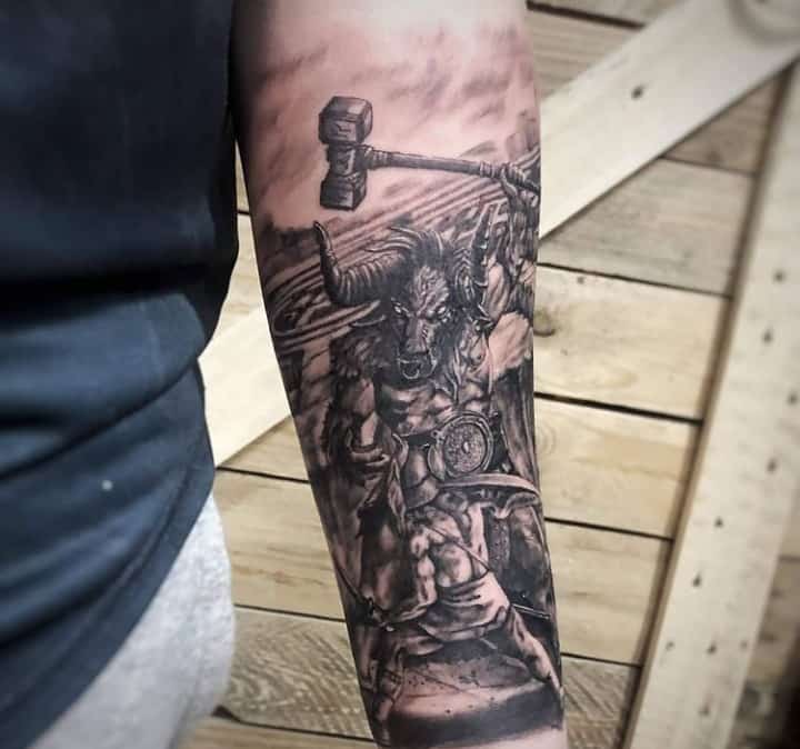 Все-таки даний персонаж, був лише наполовину людиною, а наполовину – твариною. Символічно це може означати, що в людині переважає твариний початок. Кожен вільний вибирати свій шлях в житті і власник такого татуювання прагне саме до матеріальних досягнень, а не духовних.