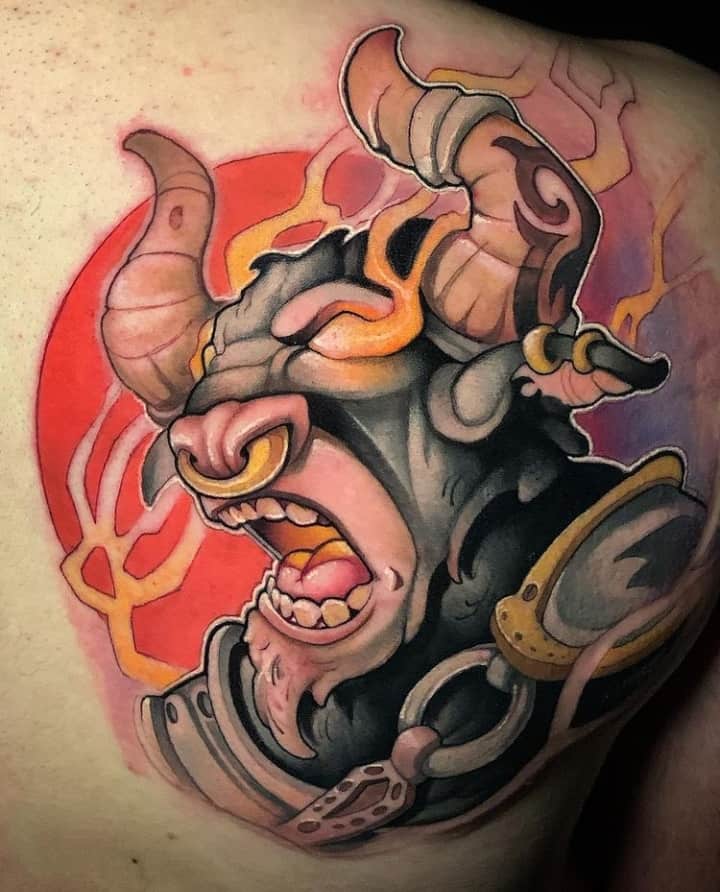 Обидва ці стилі вимагають великої деталізації, а для цього потрібна велика ділянка шкіри. При цьому, найчастіше Мінотавра зображують в чорно-білій манері, так він виглядає більш серйозно. Найголовніше-знайти досвідченого тату-майстра, який зможе виконати таку ідею.