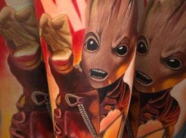 - улюбленим героєм тату-любителів є малюк Грут – миле маленьке живе деревце. В якості натільного малюнка він завжди виглядає дуже приємно і позитивно.