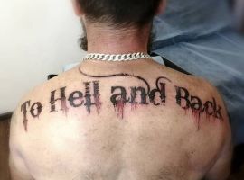 Зазвичай на спині набивають життєві девізи, мудрі вислови, біблійні цитати, мотивуючі і надихаючі фрази. Популярні у чоловіків Тексти про дружбу, сім’ю, любов.