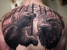 Чоловіки схильні ототожнювати себе з диким звіром, знайти або посилити відповідні риси характеру. Найбільш популярні татуювання на спині чоловічі: