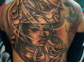 На спині розкішно виглядають обладунки, батальні сюжети, середньовічні лицарі, самураї. Тату вказують на силу, рішучість, стійкість перед труднощами, безжальність до ворогів.