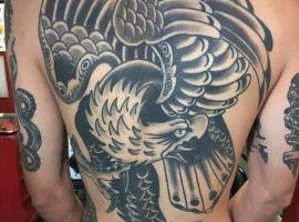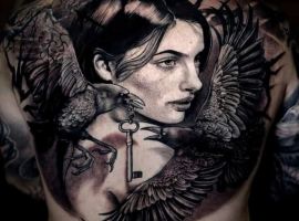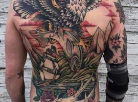 Татуювання на чоловічій спині вийде розкішним, якщо продумати ескіз, врахувати значення, стиль, палітру, розмір. Ціна буде залежати від складності та обсягу. Природно, велике реалістичне тату буде дорожче, доведеться відвідати кілька сеансів. У нашому салоні Альянс в Києві ви знайдете для втілення своєї ідеї гарного майстра з великим портфоліо в обраній категорії.