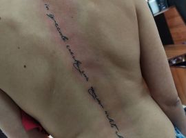Зазвичай на спині набивають життєві девізи, мудрі вислови, біблійні цитати, мотивуючі і надихаючі фрази. Популярні у чоловіків Тексти про дружбу, сім’ю, любов.