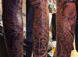 Чоловічі тату на руці можуть перерости в повноцінний рукав. Це композиція, що зафарбовує повністю всю шкіру від плеча до зап’ястя. В цьому випадку, малюнки повинні бути виконані приблизно в одному стилі і техніці, і об’єднані відповідним фоном.