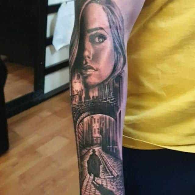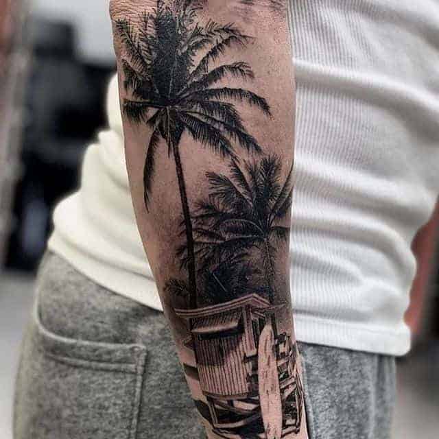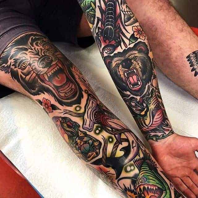 Чоловічі тату на руці можуть перерости в повноцінний рукав. Це композиція, що зафарбовує повністю всю шкіру від плеча до зап’ястя. В цьому випадку, малюнки повинні бути виконані приблизно в одному стилі і техніці, і об’єднані відповідним фоном.
