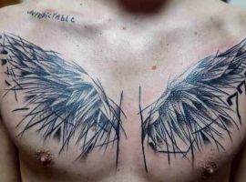 - Симетрично на двох грудях: Парні елементи, як крила чи зірки, забезпечують баланс, роблячи тату гармонійним. Це варіант для тих, хто любить симетрію в дизайні.