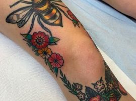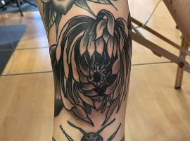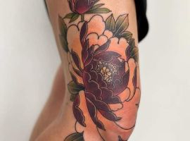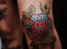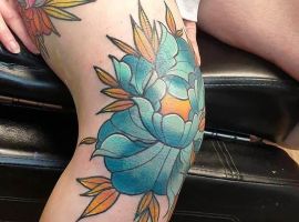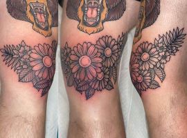Також цікаво виглядають і квіти на колінах. Звичайно, ця тематика ближча жіночої статі. Троянди на плечах, півонії на передпліччях – це класика, якої вже навряд чи когось можна здивувати. А ось зображення маку або ромашки на коліні додасть стилю і чарівності, змусить оточуючих зупиняти погляд на жіночій ніжці в теплу пору року.