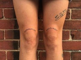 Є маса інших цікавих варіантів. Але якщо говорити в цілому про значення татуювань на колінах, то тут не можна виділити якихось особливих нюансів. Ця зона нічого не означає. Тому приховані смисли варто шукати насамперед в малюнках, які будуть обрані.