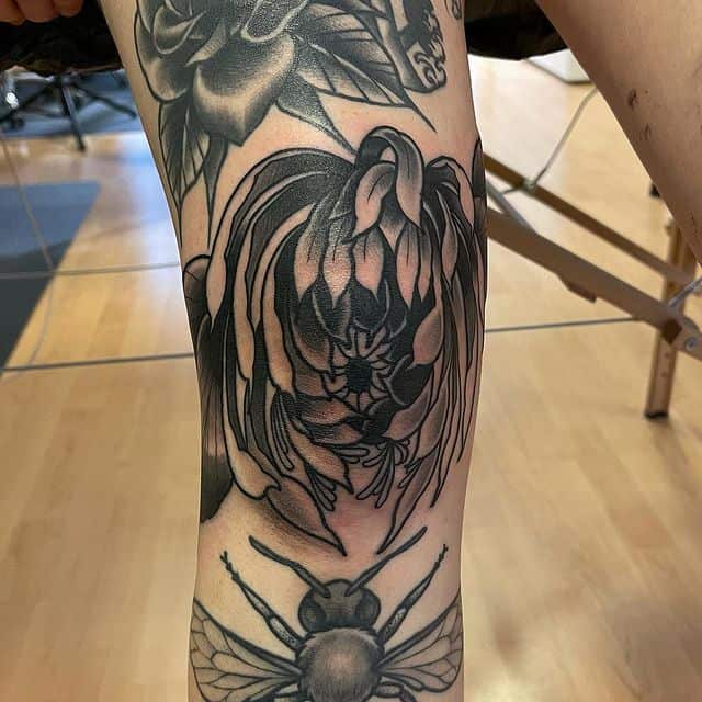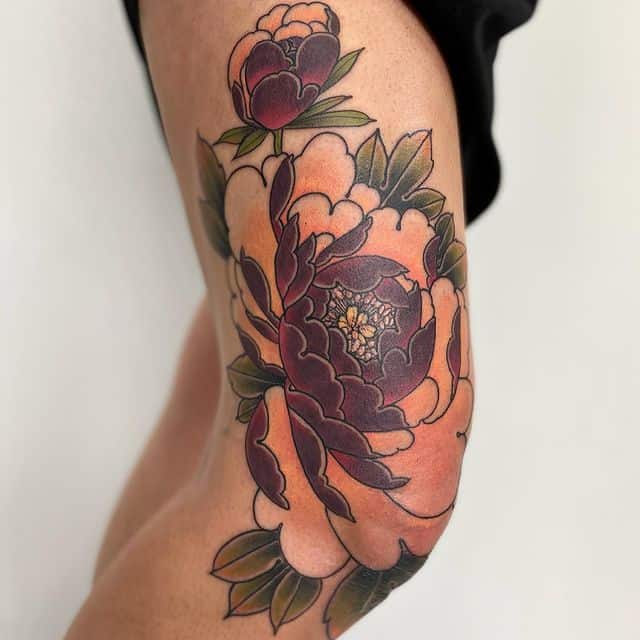 Також цікаво виглядають і квіти на колінах. Звичайно, ця тематика ближча жіночої статі. Троянди на плечах, півонії на передпліччях – це класика, якої вже навряд чи когось можна здивувати. А ось зображення маку або ромашки на коліні додасть стилю і чарівності, змусить оточуючих зупиняти погляд на жіночій ніжці в теплу пору року.