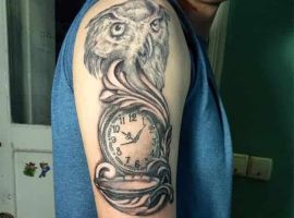 Сова. З птахів на мужньому тілі найбільш затребуване татуювання сова, що символізує мудрість, пізнання. Рекомендується хлопцям врівноваженим, вдумливим, інтровертам, які прагнуть пізнавати світ.