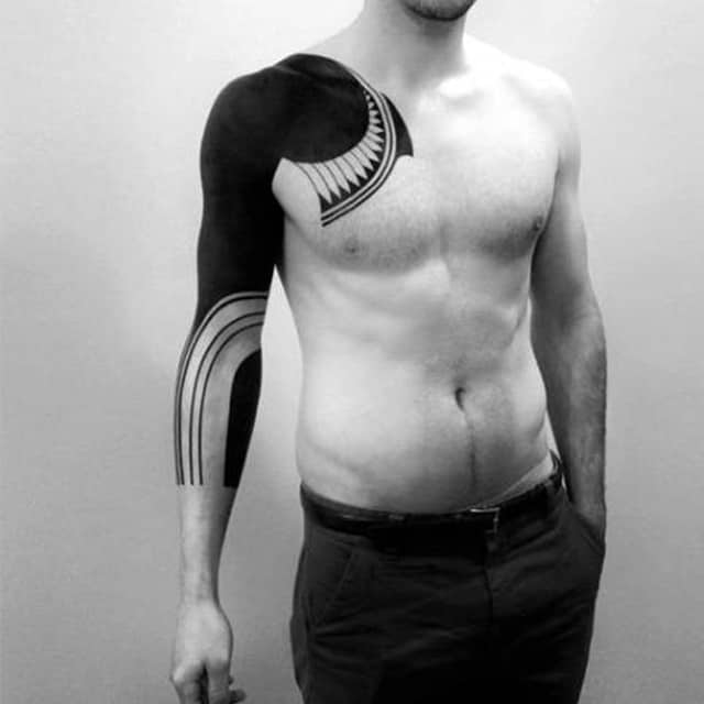 - Блекворк – стильний напрямок, що поєднує геометричні форми різної складності і суцільне покриття чорним пігментом окремих ділянок.