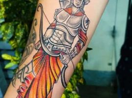 Акварельний стиль, навпаки, приносить легкість і колорит: тут лінії м’які, з плавними переходами відтінків, ніби акварель розтікається по паперу. Він популярний для абстрактних мотивів чи природних елементів, де кольори зливаються в гармонійну палітру, додаючи руці художнього шарму без жорстких контурів. Для чоловіків акварель стає способом виразити креативність, роблячи тату сучасним і нестандартним, особливо на передпліччі, де рухи роблять кольори “танцюючими”. Цей стиль вимагає майстерності в роботі з пігментами, щоб уникнути вицвітання, але результат – унікальне тату, що виділяється серед класики.