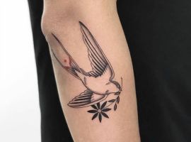 - Птах. Є символом свободи. Найбільшою популярністю користується зображення ластівки, яка означає Любов і свободу. Як просте татуювання цей птах буде красиво виглядати на зап’ясті.