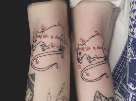 - Найчастіше такі малюнки набивають в стилі лайнворк. Зображення складається з прямих ліній.
