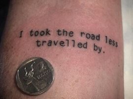 Не кращим варіантом стане текст, що позначає сумну дату. Навіть через роки він буде нагадувати про трагічні події. Майстри радять не поспішати перед тим, як увічнити на своєму тілі ім’я коханого, особливо якщо відносини тривають недовго. Адже почуття можуть охолонути, через що татуювання доведеться або переробляти, або видаляти. Так, відома історія актора Джонні Деппа, який наніс на шкіру ім’я Вайнони Райдер і словом «назавжди». Після розставання ім’я “Вайнона” було змінено на слово “Вино”, в результаті чого вийшло: “Вино назавжди”.