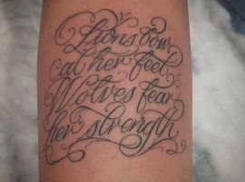 Ніжні ідеї для дівчат на латині, написані немов від руки, можуть бути прикрашені квітами, метеликами, всілякими рослинними мотивами. Тату чоловічі можна доповнити зображеннями зброї, черепів. Написи російською добре виглядають на тлі слов’янської символіки, коловороту, символів язичницьких богів і богинь.