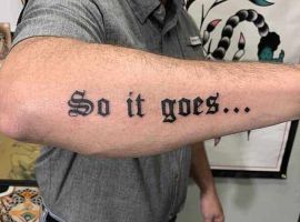 Чоловічі тату написи можуть бути досить масштабними, займаючи всю руку від зап’ястя і до ліктя або плеча. Тату на передпліччі чоловічі відмінно виглядають як на зовнішній, так і на внутрішній сторонах.