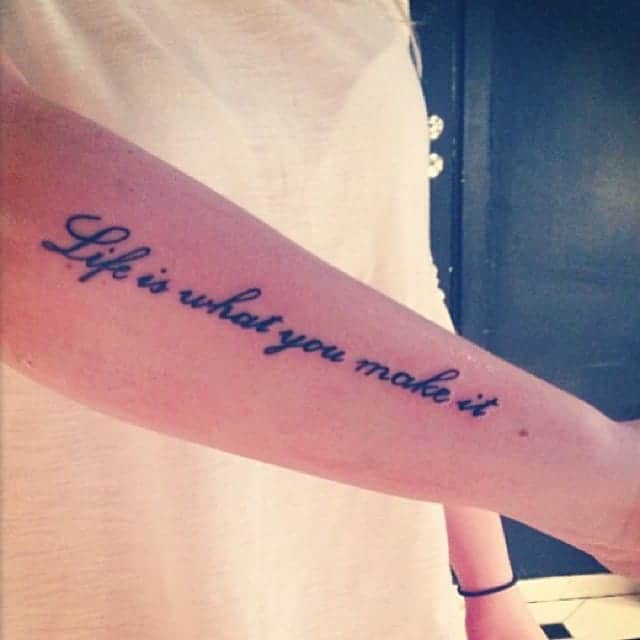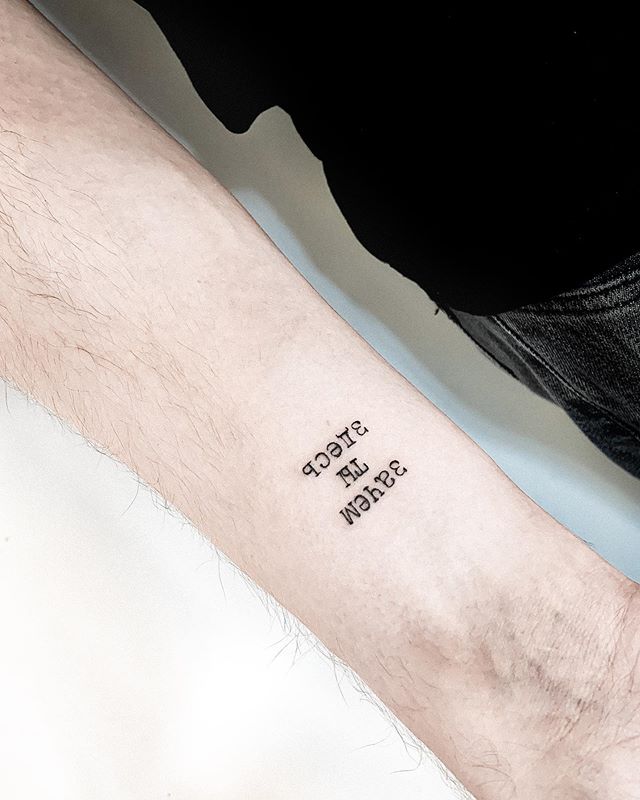 Чоловічі тату написи можуть бути досить масштабними, займаючи всю руку від зап’ястя і до ліктя або плеча. Тату на передпліччі чоловічі відмінно виглядають як на зовнішній, так і на внутрішній сторонах.
