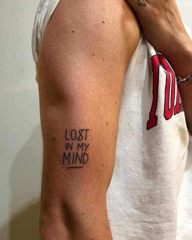 Чоловічі татуювання з текстом містять мотивуючі фрази або життєві принципи.