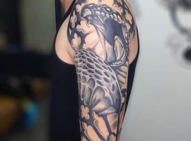 Рука – це динамічна частина тіла, яка завжди на виду, тому татуювання на руку додає образу родзинку, роблячи його неповторним. Шкіра тут еластична, з помірним рівнем болючості: м’які зони, як біцепс чи плече переносять сеанс легше, ніж кістяні ділянки на кисті. До того ж, рухи руки дозволяють візерункам “оживати” – уявіть, як дракон згинає крила під час жесту, чи квіти розпускаються при русі.