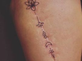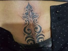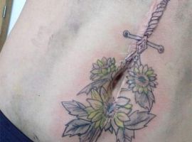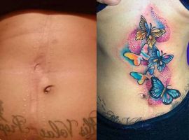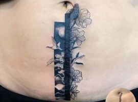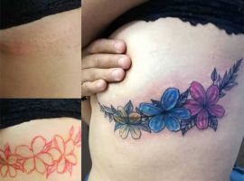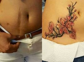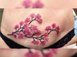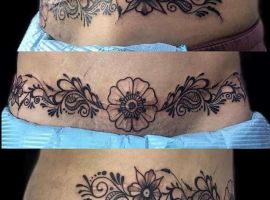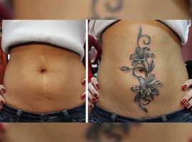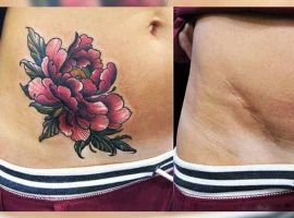 Шрам від кесарева виглядає як поперечна смуга в нижній частині живота. Для молодих жінок – серйозний привід для формування комплексів. Існує багато симпатичних жіночих варіантів татуювання на шрамах внизу живота:
