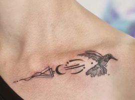 На ключиці дівчата роблять квітучі гілки, стріли, бутони, написи. Для прикраси зап’ястя підійдуть орнаменти у вигляді браслета, квіткові мотиви, мінімалістичні зображення.