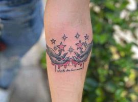 Травми на руках нерідкі, оскільки ці частини тіла найбільш контактують з навколишнім середовищем. Якщо пошкодження велике, можна зробити на руці «рукав», причому насиченого кольору із Суцільною пігментацією. Якщо травма невелика, можна вибрати будь-який ескіз, вподобаний візуально і за значенням.
