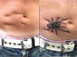 Щоб прикрасити живіт, в салони частіше звертаються жінки, які народили шляхом кесаревого розтину. Чоловіки приховують на животі татуюванням слід, що залишився після видалення апендициту, чи іншої операції на черевних органах.