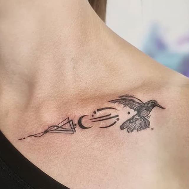 На ключиці дівчата роблять квітучі гілки, стріли, бутони, написи. Для прикраси зап’ястя підійдуть орнаменти у вигляді браслета, квіткові мотиви, мінімалістичні зображення.