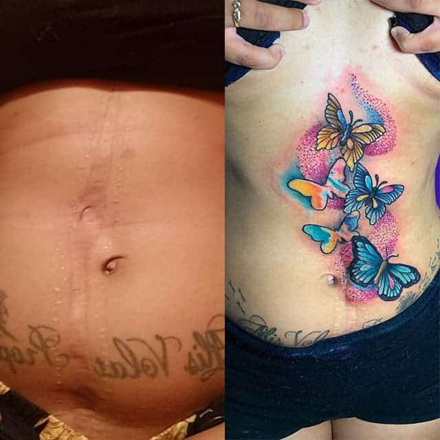 Щоб прикрасити живіт, в салони частіше звертаються жінки, які народили шляхом кесаревого розтину. Чоловіки приховують на животі татуюванням слід, що залишився після видалення апендициту, чи іншої операції на черевних органах.
