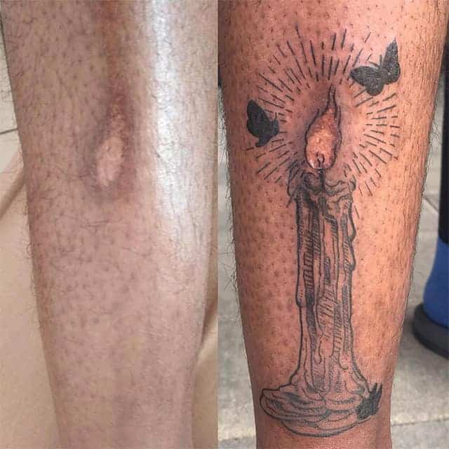 - Гіпертрофічні – опуклі рубці, що з’являються після опіку, глибокої травми. Якщо шкіра недостатньо затягнулася, тату на гіпертрофічному рубці зашкодить внутрішнім тканинам. Механічний вплив може стати провокатором розростання рубцевої тканини, тому для даного випадку бажана консультація дерматолога перед нанесенням.