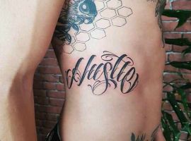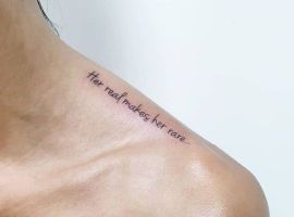 Також дуже жіночні місця для тату з текстом-це ключиця, щиколотка і ребра. Такі написи для дівчат будуть не тільки смисловими, але і вдало підкреслять стрункість, талію і фігуру в цілому. Сюди також часто наносять фрази латинською, які будуть передавати погляди дівчини по життю. Але так як дані місця дуже чуттєві, то логічно і цитати вибирати такі, які говорять про чуттєвість, сексуальність або романтизм, жіночність і ніжність або пристрасть.