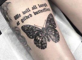 Також нерідко для тату з такою ідеєю вибирають цитати з книг, пісень або фільмів. Коли ми фанатіємо творчістю якогось музиканта, письменника, поета або якимось конкретним фільмом, то ті ідеї, які закладені в цитатах, нам дуже близькі. Тому на чиїйсь шкірі часто можна побачити дуже відомі фрази.