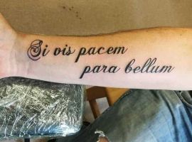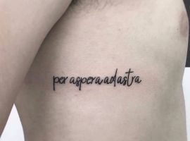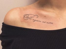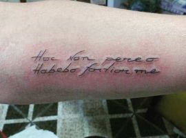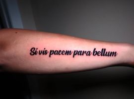 Дуже часто роблять татуювання написи зі змістом на латині у вигляді цитати якоїсь видатної людини або відомого афоризму. За допомогою такої фрази на латині на шкірі людина проявляє свої особисті якості або показує, що для неї є найголовнішим в житті. Часто саме таке тату на тілі – це девіз людини по життю, її головне кредо. Звичайно, в тому ж сенсі наносять і тату написи російською та українською мовами. Різниця буде в тому, що латинською сенс афоризму буде більш загадковим. Оточуючим буде складніше зрозуміти, що саме в нього вкладено. У той час як тату написи російською, наприклад, відразу видаватимуть те, яке значення ви надали своєму татуюванню.
