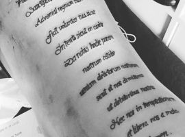 Немає більш популярних натільних малюнків, ніж татуювання написи зі змістом на латині. Ця ідея поширена серед людей різних статі, віку, професій і соціального стану. Перевага в тому, що нанести можна абсолютно будь-який текст, будь-який сенс, на будь-яку частину тіла і в будь-якому розмірі. Розглянемо всі особливості тату написів.