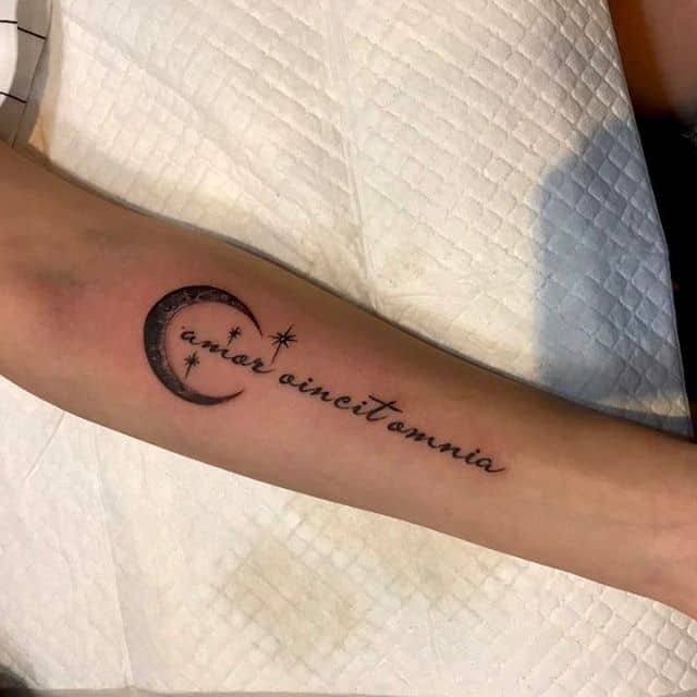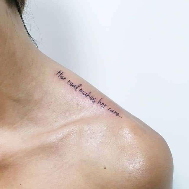Також нерідко для тату з такою ідеєю вибирають цитати з книг, пісень або фільмів. Коли ми фанатіємо творчістю якогось музиканта, письменника, поета або якимось конкретним фільмом, то ті ідеї, які закладені в цитатах, нам дуже близькі. Тому на чиїйсь шкірі часто можна побачити дуже відомі фрази.