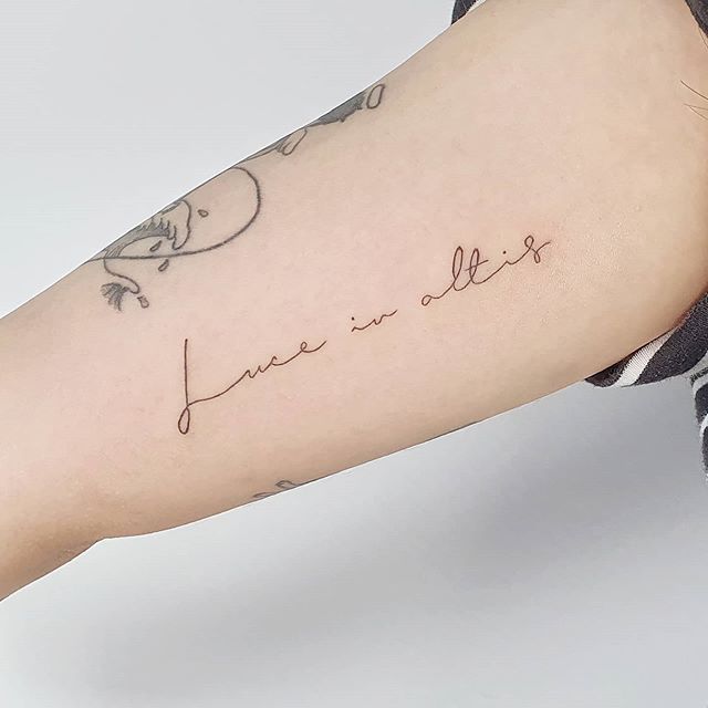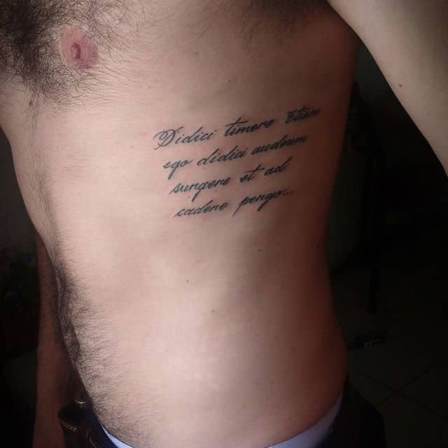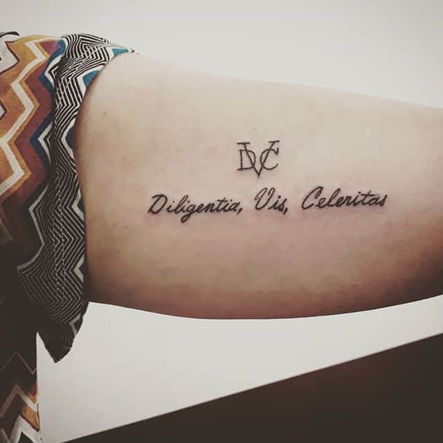 Дуже часто роблять татуювання написи зі змістом на латині у вигляді цитати якоїсь видатної людини або відомого афоризму. За допомогою такої фрази на латині на шкірі людина проявляє свої особисті якості або показує, що для неї є найголовнішим в житті. Часто саме таке тату на тілі – це девіз людини по життю, її головне кредо. Звичайно, в тому ж сенсі наносять і тату написи російською та українською мовами. Різниця буде в тому, що латинською сенс афоризму буде більш загадковим. Оточуючим буде складніше зрозуміти, що саме в нього вкладено. У той час як тату написи російською, наприклад, відразу видаватимуть те, яке значення ви надали своєму татуюванню.