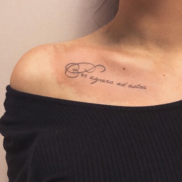 Також дуже жіночні місця для тату з текстом-це ключиця, щиколотка і ребра. Такі написи для дівчат будуть не тільки смисловими, але і вдало підкреслять стрункість, талію і фігуру в цілому. Сюди також часто наносять фрази латинською, які будуть передавати погляди дівчини по життю. Але так як дані місця дуже чуттєві, то логічно і цитати вибирати такі, які говорять про чуттєвість, сексуальність або романтизм, жіночність і ніжність або пристрасть.